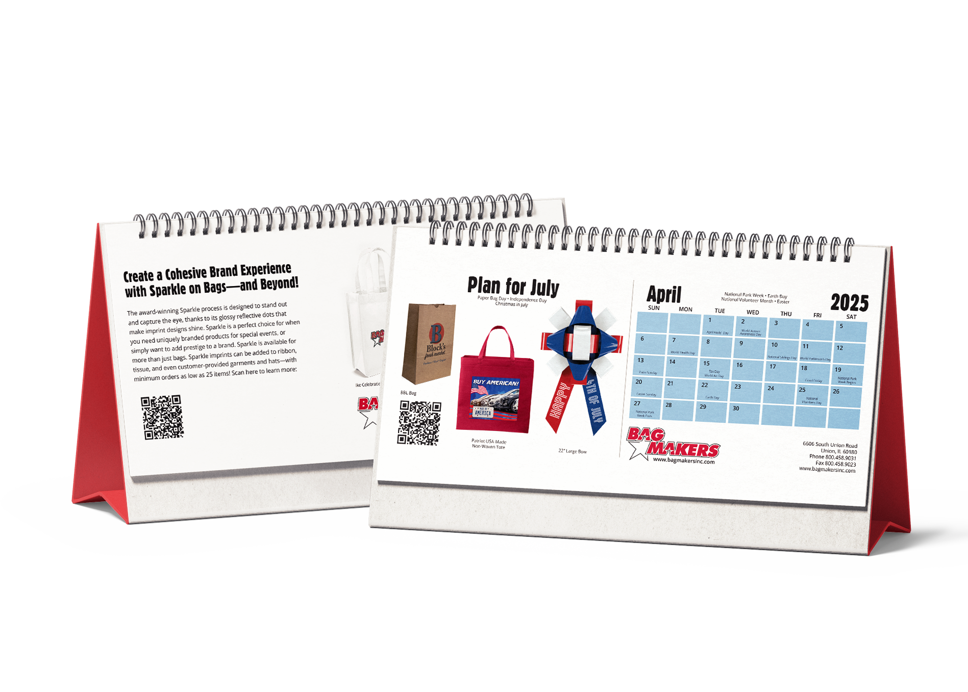 Collaborated on the development of a marketing collateral piece for Bag Makers, creating an interactive desktop calendar designed to support third-party distributors. The calendar featured monthly QR codes linking to mobile-friendly sales content, helping distributors better understand and promote a wide range of bag products throughout the year.